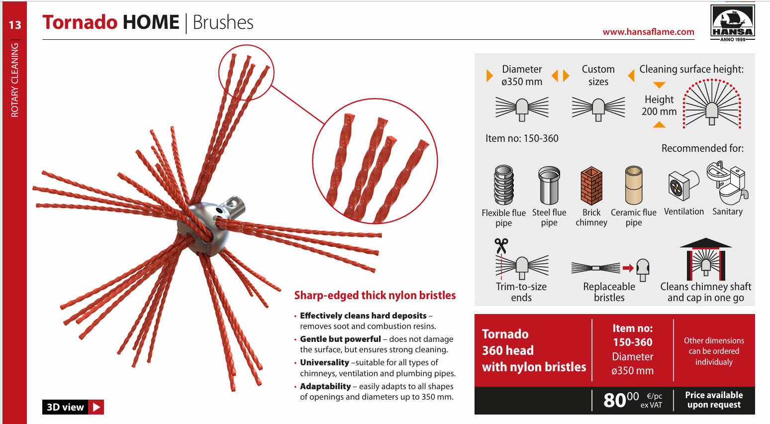 La tête 360TORNADO HOME est conçue pour un nettoyage efficace des cheminées.