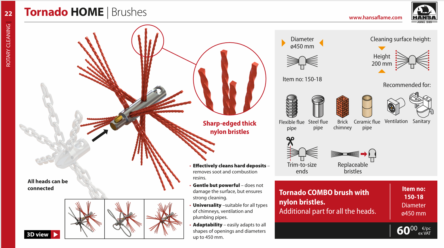 La tête Combo TORNADO HOME est conçue pour un nettoyage efficace des cheminées.