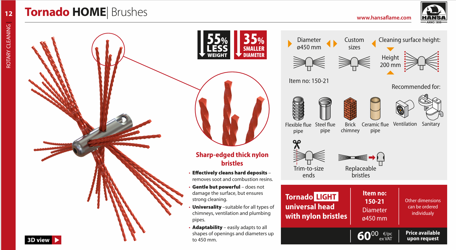 La tête universelle Light TORNADO HOME est conçue pour un nettoyage efficace des cheminées.
